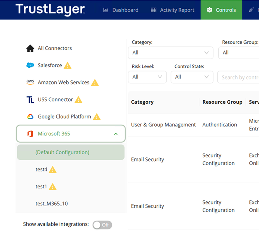- Access the list of all M365 connectors by clicking the Microsoft 365 option in the left sidebar menu.