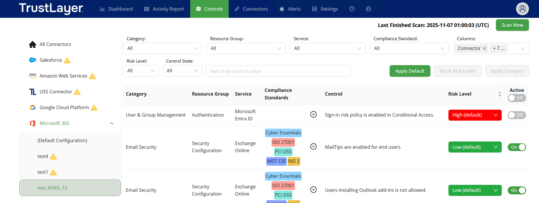All your M365 connectors will be scanned separately, and you can review the scan results for each connector.