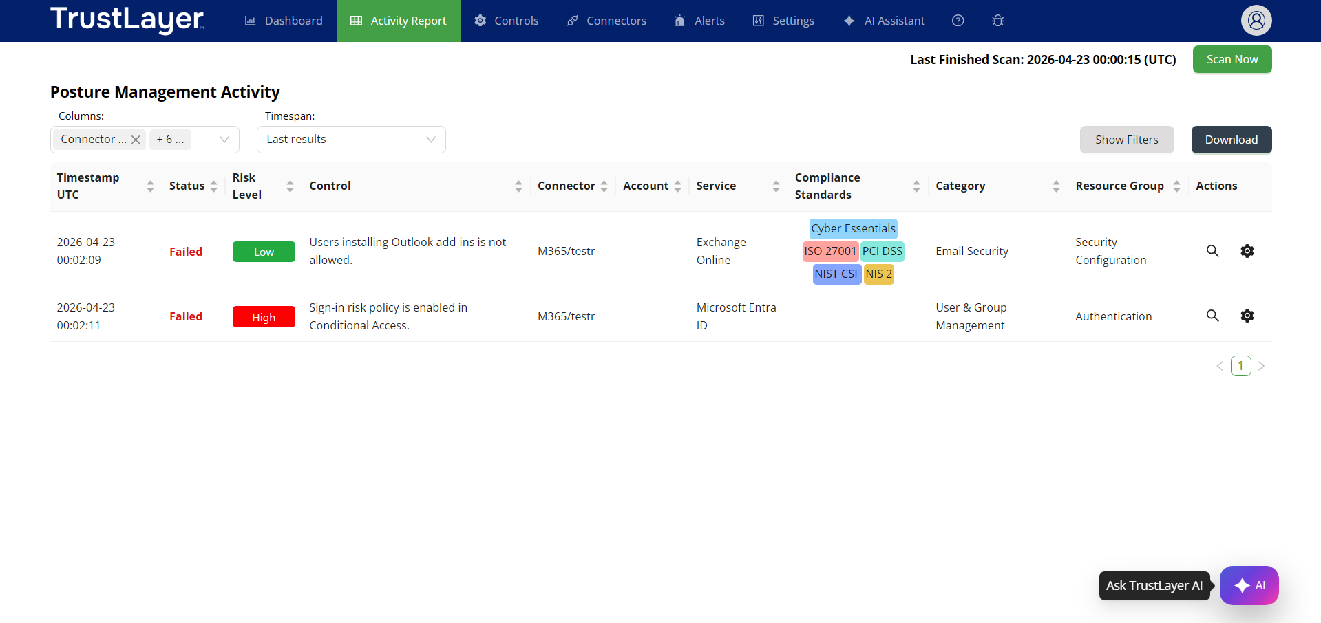 Posture Management AI is your Cloud Security Assistant that helps you understand security findings across your IaaS and SaaS cloud services. Available 24/7, it acts as a virtual security expert, guiding you through scan results, explaining controls in simple language, and helping you take actionable steps to improve your cloud security posture.