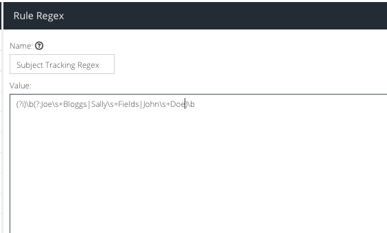 - Give the Regex a sensible name, such as “Subject Tracking Regex”.