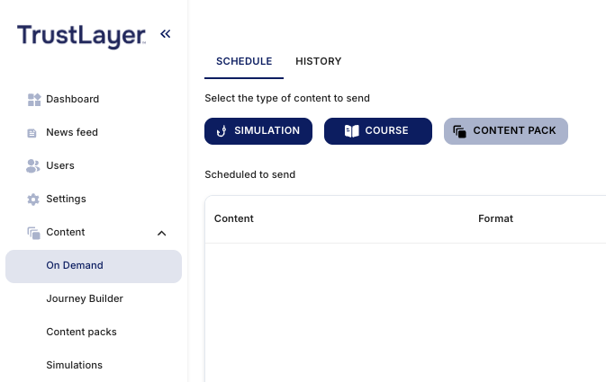 Once a content pack has been created, you can then use the On-Demand feature to easily send it to members of your organisation.