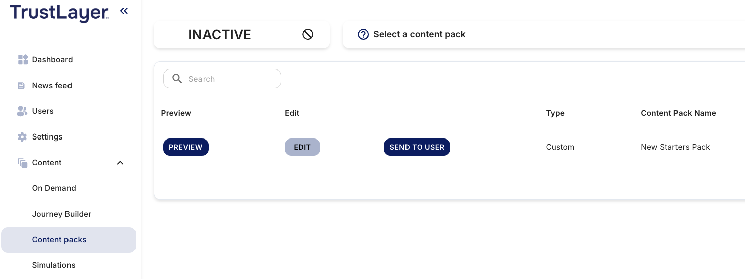 Preview the active, custom or preset pack at any time to ensure your newly added users are being assigned the correct courses.