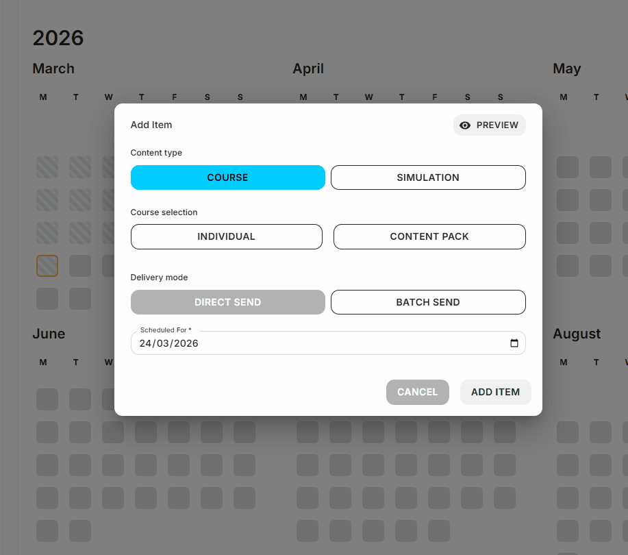 - Click Preview to review scheduled content