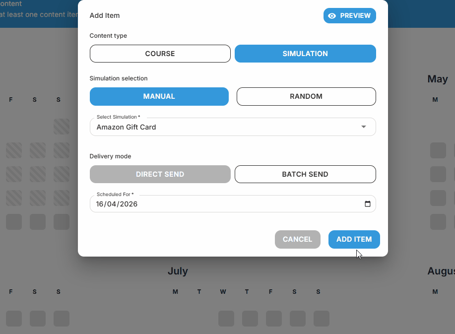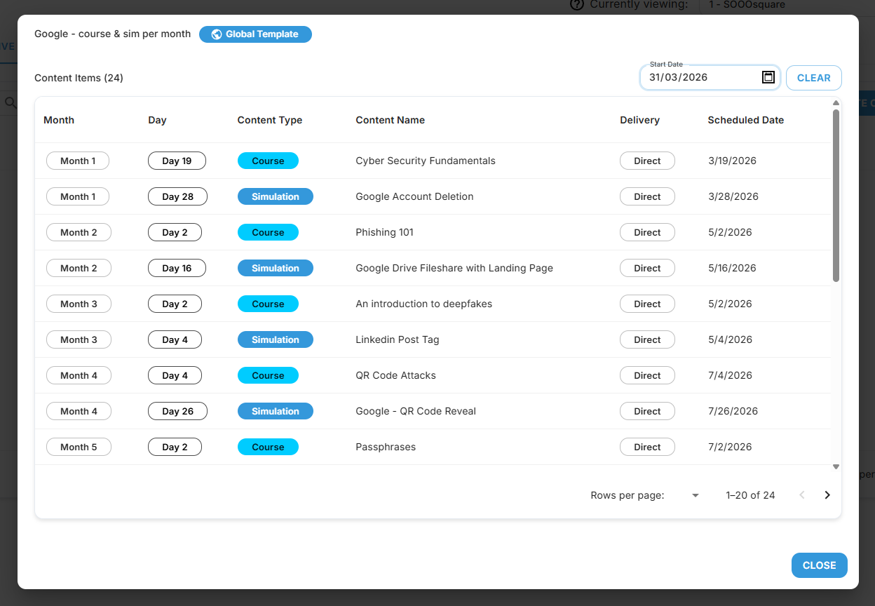 Schedule training courses or phishing simulations within your journey.