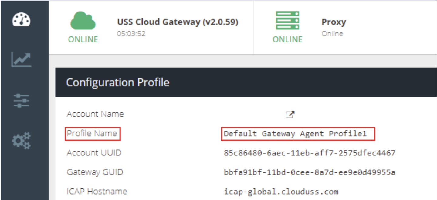 Hover your mouse over the USS agent icon, and the configuration profile name will be displayed.